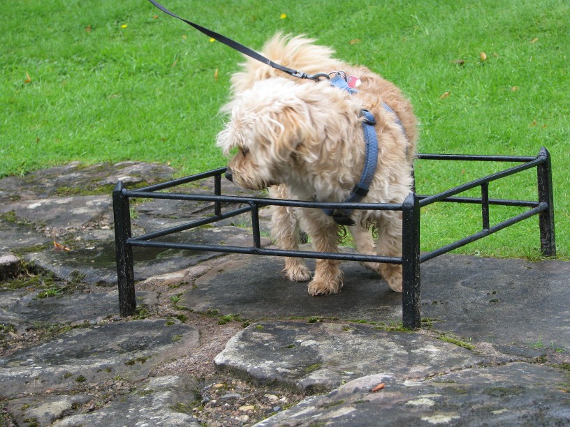 Überflutet ist auch unser Wohnmobil, aber von innen. Unsere arme Lotta behält nichts bei sich, außer wir geben ihr ganz vorsichtig geringe Mengen Wasser. Fressen mag sie gar nichts und so rufen wir Sonntag Abend um halb sechs den Veterinär-Notdienst an. Verständigung per Handy und in englisch, na ja – geht so. Wir stehen in Jedburgh vor der Veterinär-Praxis, teilen das dem Notdienst auch mit, aber der Notdienst verständigt den Tierarzt im Nachbarort. Damit rechnet keiner und so wird beim Rückruf des Tierarzts über den Treffpunkt nur als ‚in der Praxis‘ gesprochen. Der Notdienst muss sonntags auch erst dorthin fahren, wir glauben er käme nach Jedburgh er fährt aber nach St. Boswell und ruft an dass er in der Praxis sei. Wir gehen zur Praxis, klingeln, kein Mensch da. Schließlich kärt sich alles auf, wir fahren 10 Meilen zur richtigen Praxis und nach einer Spritze und Traubenzuckerpräparat fürs Trinkwasser wird es Lotta hoffentlich nach und nach besser gehen.