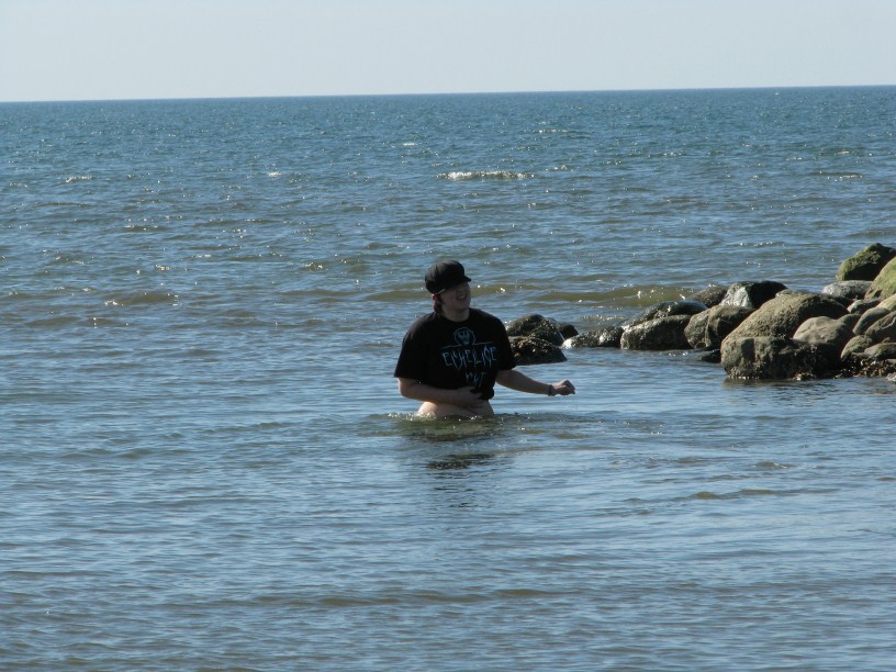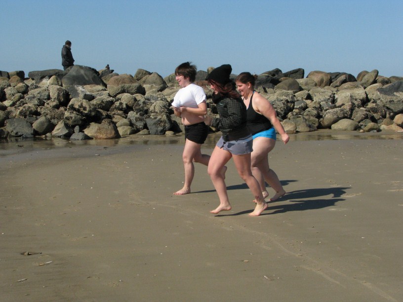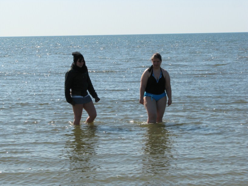 Am schlimmsten erwischte es aber die gerade so erwachsenen weiblichen Bewohner. Schon beim Frühstück waren sie kaum zu halten. Und als die Mittagssonne mit unerträglich heißen 6-7 Grad vom Himmel brannte, gab es kein Halten mehr. Nichts wie ab zum Strand, raus aus den Klamotten und rein ins Wasser, das mit 4 Grad endlich eine willkommene Abkühlung versprach.