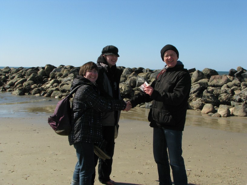 Für die beiden Sieger gab es dann auch gleich am Strand die versprochenen 5 Euro. Dann ging’s ab zurück ins Ferienhaus zum Aufwärmen.