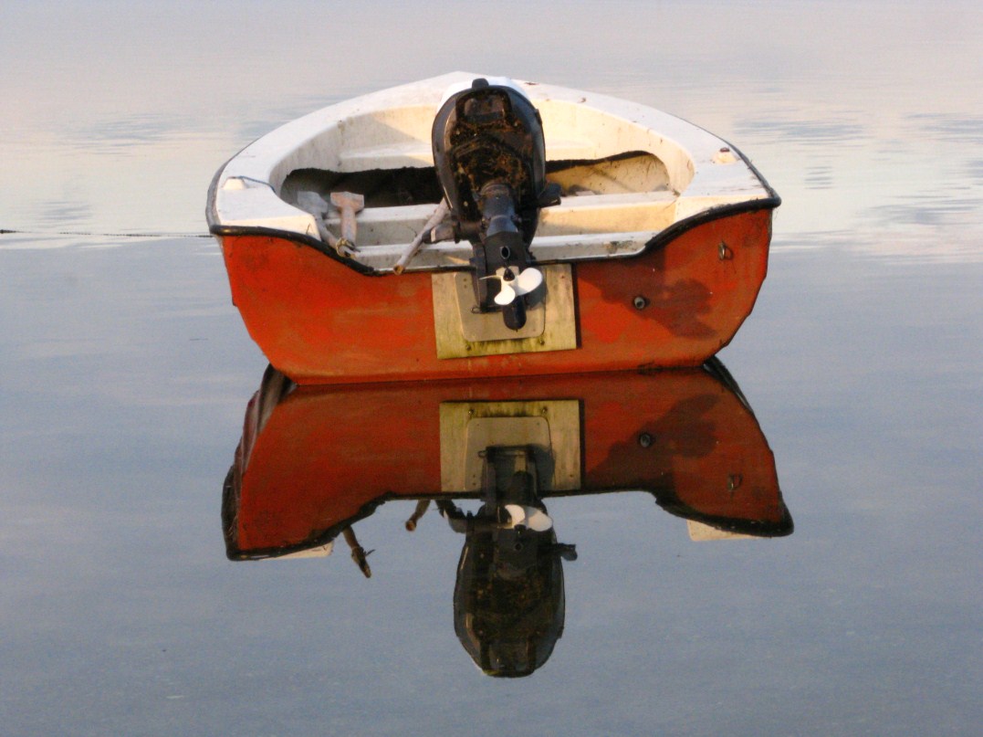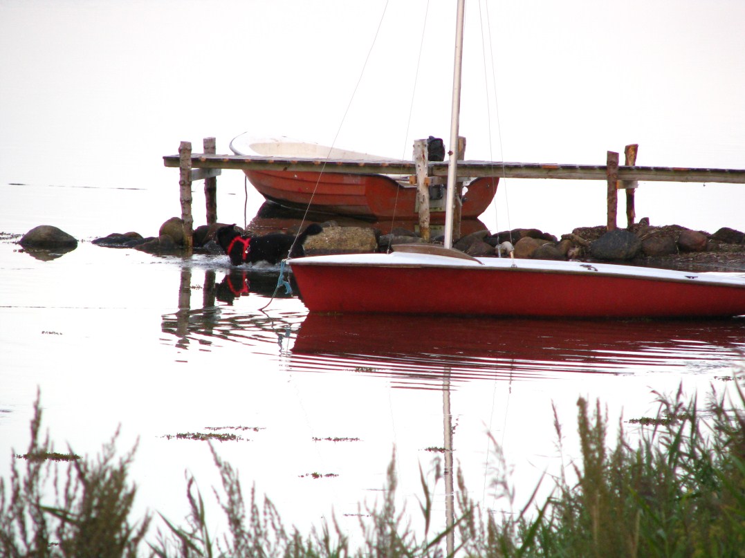 Ich nutze die Zeit für ein paar Aufnahmen mit Spiegelungen im nahezu unbewegten Wasser. Mara wundert sich darüber, dass die Boote sich ein wenig bewegen, beide Hunde genießen die Zeit mit Sonne, Wasser und ganz ohne Leinen.