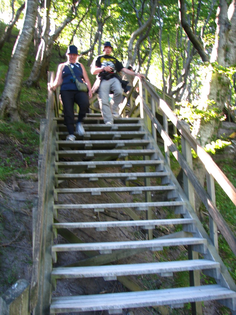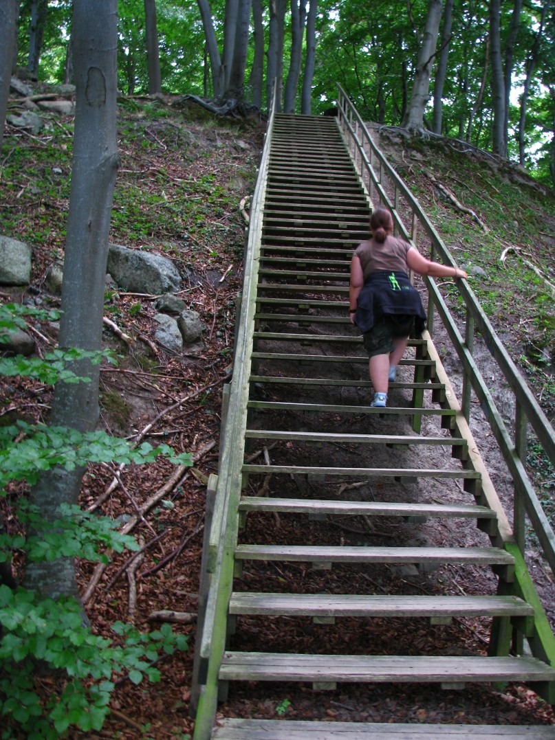Im heutigen Plan zwangsweise enthalten ist nach der Fotosession auch der Aufstieg zurück zum Wohnmobil. Wir zählen und markieren mit der vom Strand mitgenommenen Kreide jede 10te Stufe.
