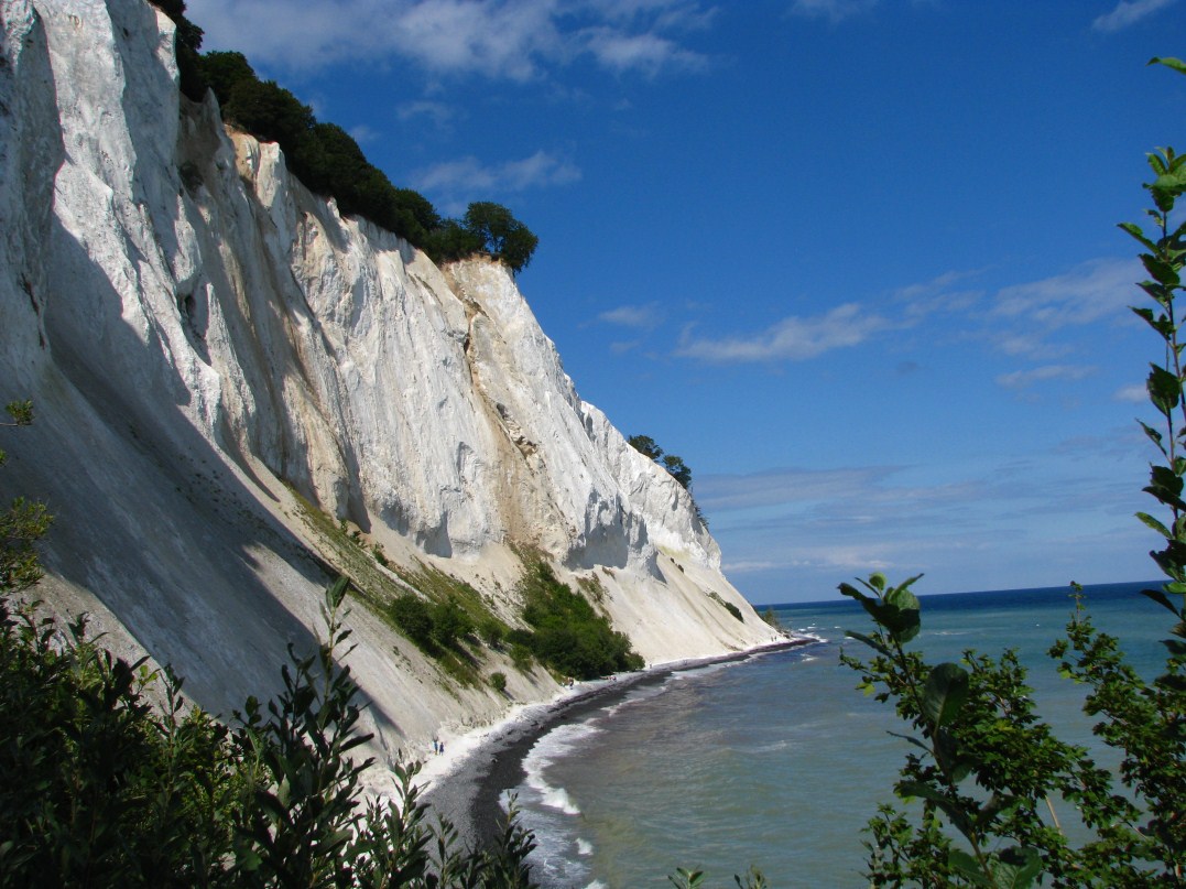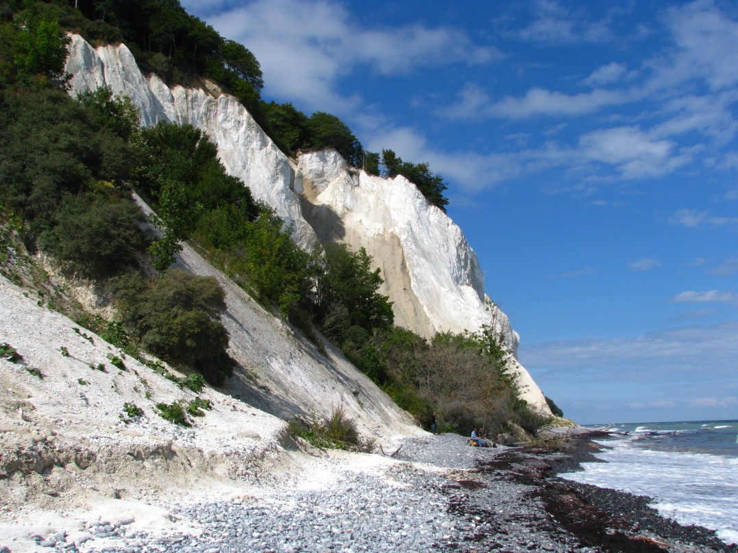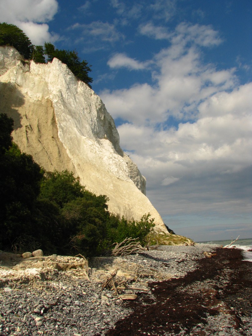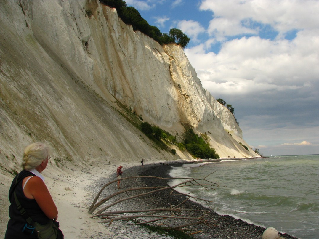 Sonne sehen möchten. Von Nyord geht es also auf kürzestem weg zu den Klippen. Halb eins sind wir da und machen uns sofort an den Abstieg. Wie viele Stufen sind das noch? Ach egal, wir zählen später beim Aufstieg. Unterwegs immer wieder mal ein Halt für ein Foto. Aber eigentlich wollen wir nur möglichst schnell zum Strand. Das Wetter ist heute etwas durchwachsen. Es ziehen immer wieder Wolken durch. Wir nutzen das zum Standortwechsel. Im Wolkenschatten schnell zum nächsten Fotopunkt, dann auf die Wolkenlücken warten und los gehts.