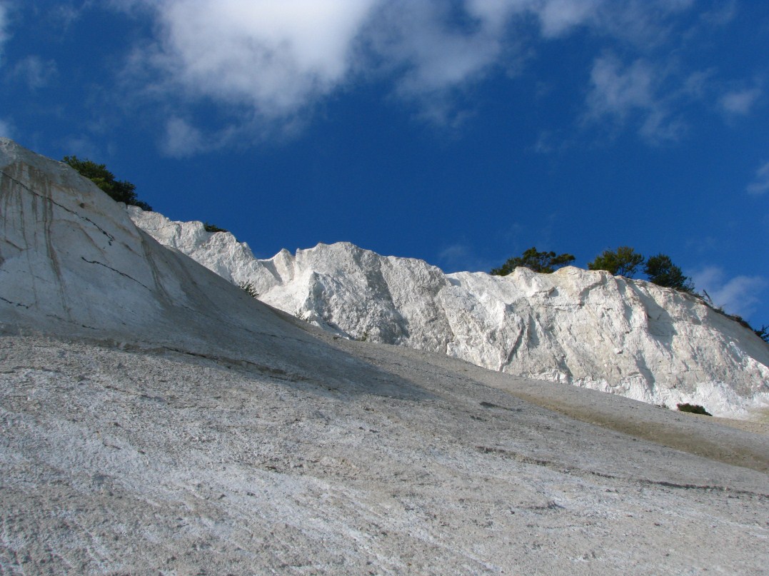 Wie geplant (Plan… war da nicht was… ach egal) fahren wir gleich früh zu den Klippen. Moment mal, da ist eine Abfahrt, die haben wir gestern nicht gesehen. Nyord, eine kleine Insel direkt am Ulveshalen. Dort – so erfahren wir später- gibt es den schönsten Ort Dänemarks. Das sehen wir auch so und so genießen wir hier blaues Meer, blauen Himmel, idyllische Sträßchen. Aber war da nicht noch was? Plan, ähh…Ach ja, der Plan. Also nichts wie los zu den Klippen, die wir heute ja mal mit