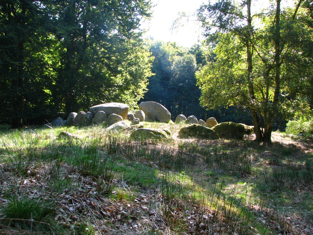 Ein Stück weiter soll es die größte frühzeitliche Grabanlage Dänemarks geben, Grønsalen oder Grønjagers Høj. Wir fahren eine Weile suchend um Äcker und kleine Wäldchen herum, bis wir das große Dolmengrab finden. Ja, groß ist es, 100m lang, 13m breit, aber trotzdem sehr unscheinbar. Jetzt sind wir aber schon mal hier und schauen es uns auch etwas genauer an. Wir finden einen langen flachen Hügel neben einem Bauernhof, umrandet von großen Steinen und mit einem fast weißen Stein oben drauf.