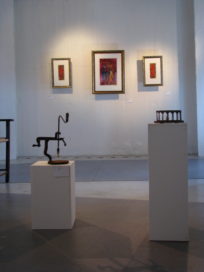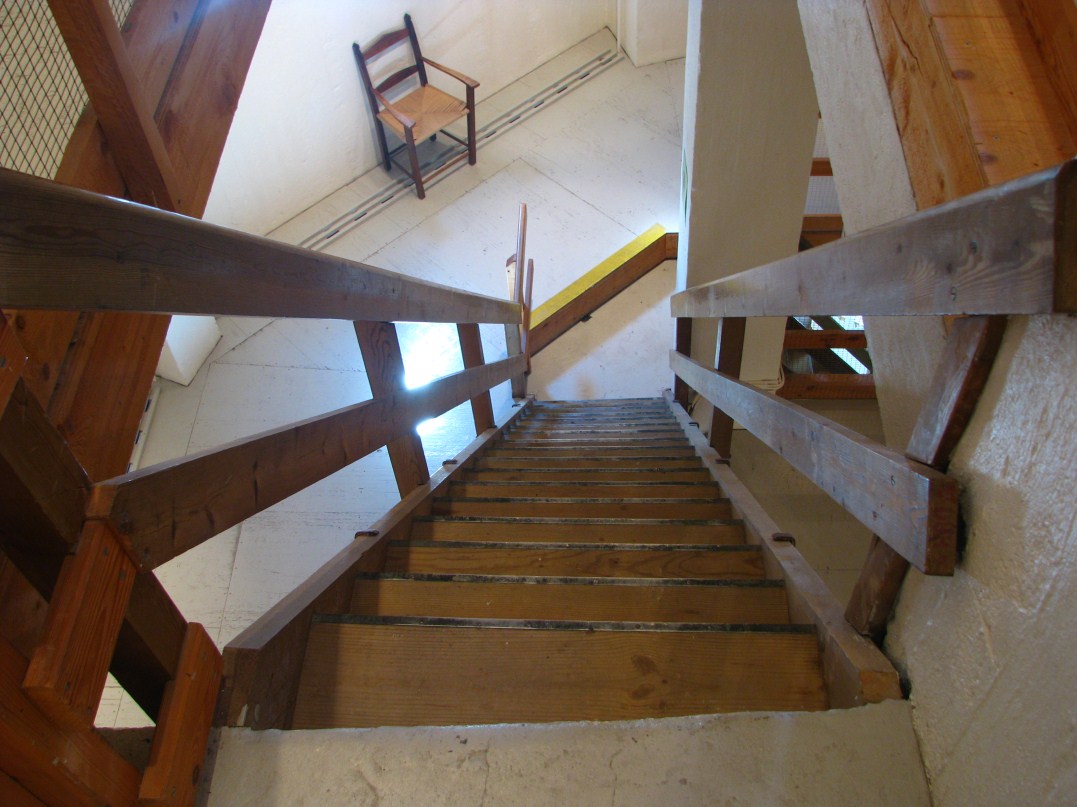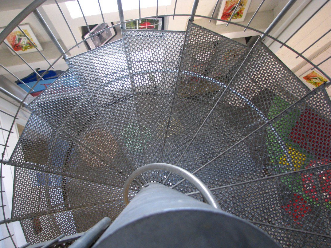 Im alten Wasserturm finden wir eine Kunstausstellung mit, sagen wir mal, interessanten Objekten. Immerhin sollen einige Gemälde 14.000kr kosten – ich hatte sie auf 1.400kr geschätzt. Aber für die Kamera ergeben sich im Turm schöne Motive von… Treppen und … Kunst.