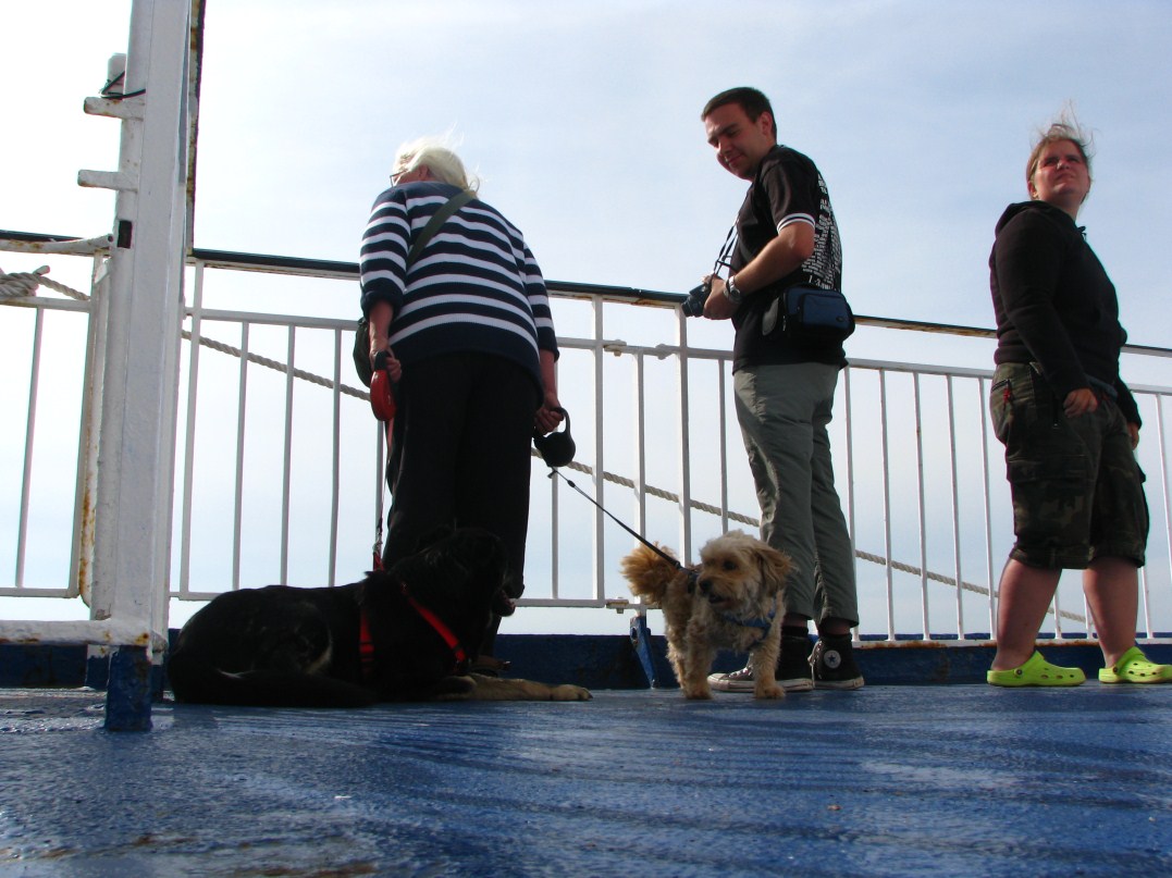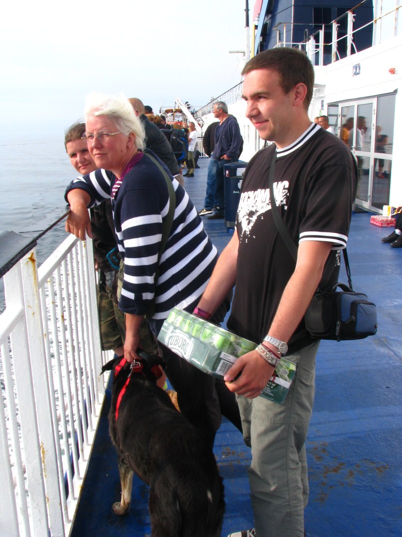 , dass wir noch drauf können. Hätten wir das gewusst, hätten wir gestern doch Online gebucht. Es klappt dann aber doch, als allerletztes Auto können wir noch auf die Fähre. Die Hunde dürfen mit auf Deck und Sven darf in den Duty Free Shop. Erfolgreich kommt er mit seiner Beute zurück.
