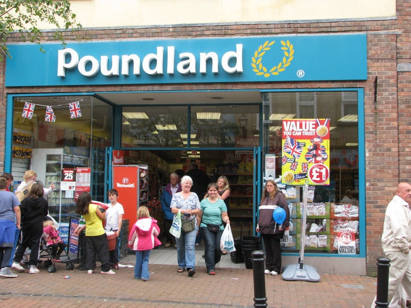 Was habt ihr der Lady rechts am Eingang vom Poundland angetan? Die sieht so aus, als ob ihr sie entweder nicht mit reingenommen habt (alleine durfte sie wohl nicht), oder ihr habt ihr gerade die letzte Portion von ihrem Lieblingsporridge vor der Nase weggekauft…