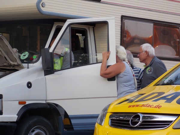 Gerd. Gerd hatte uns ja schon bei unserer Panne mit Rat und Hilfe-Organisation zur Seite gestanden. Und auch bei der Erklärung für Gisela, wie in den nächsten 2 Wochen das Wohnmobil gestartet wird, ist er natürlich dabei.